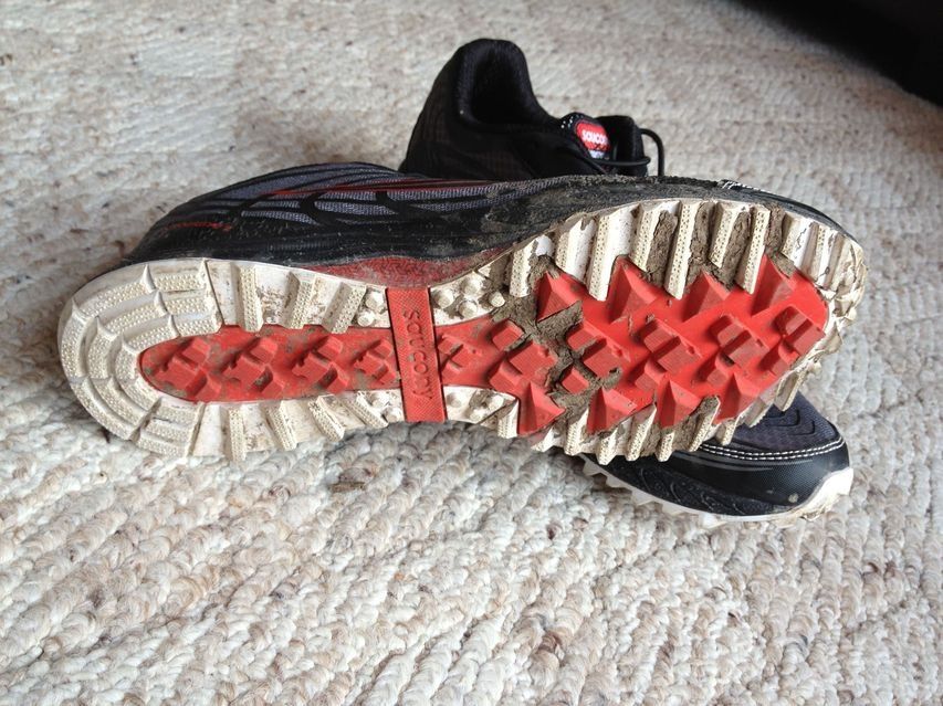I wanted a new pair of trail shoes to replace my Saucony Xodus’. I bought them mainly to use on and off road in the winter, but I planned to do more trail running this summer. I figured I could do with something more breathable, and “flatter” for this. I basically do all my summer road running in Saucony Kinvaras so the 4mm drop of the Peregrines appealed to me. They also seemed to be a nice balance of weight and durability. They weigh in at a couple of ounces less than my Xodus’ and feel noticeably lighter.