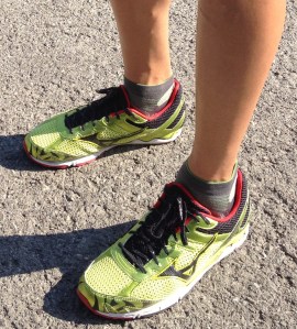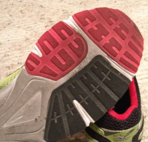The sole is a combination of harder rubber in the heel and forefoot area, separated with softer foam in the mid section.  The sole has lots of rubber where required to make this a durable shoe.  With the few runs I have done in the shoe the wear seems normal – nothing I am concerned with.  If you are a heel striker there seems to be enough rubber in this area to keep you going.   The 13mm of padding in the forefoot allowed a good feel for the road, which I liked.