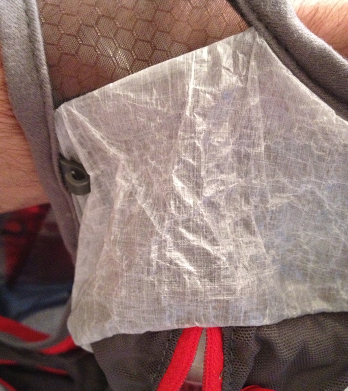 The first thing I noticed about this pack was that it was REALLY light!  The fabrics and design were obviously selected to reduce the weight carried over longer ultra distances.  This light fabric also made the pack more breathable.  Among the unique features found on this pack was the use of something called Cuben fibre.  This stuff looked like scrunched up wax paper, but in reality is much more durable.  Apparently this is the same fabric used on sails for racing yachts, and I doubt they would use something that rips or wears out easily!  Along with this super light fabric the vest had a ton of mesh which provided great air flow and ventilation.