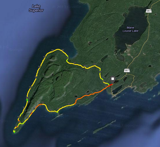 Thanks for putting up your trip details. I ran the Giant’s loop from Tea Harbour on August 7th, 2013. My total time was 3hrs 42Mins. I know I was slow on climb up to Talis from Sawyer Bay and was thrown into bushwacking mode when I went right instead of left at the lakehead. I couldn’t agree more with your west coast comparison. The floor of the Forrest is quite comparable with what one would find in a coastal trail like West Coast Trail. I would love to beat this time next year.