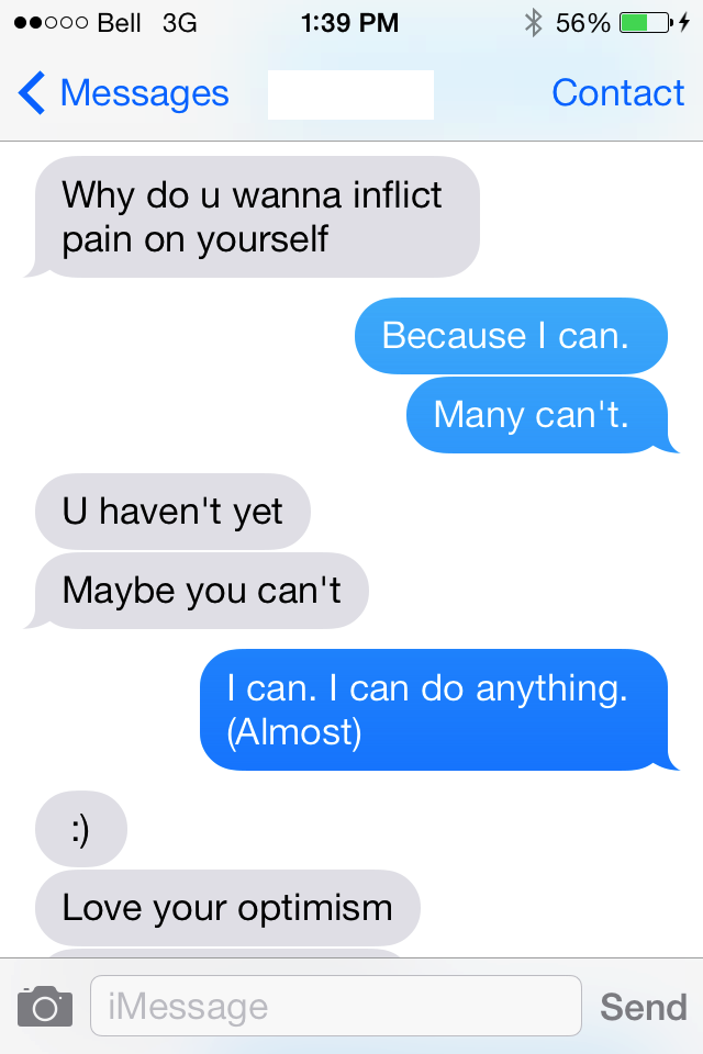 So that’s my plan. I’m just going to do it. A friend asked me the other day why I want to “inflict pain” on myself by running 100 miles. I answered “Because I can.” Like many people who do these races all the time, I can do it, so why wait? Like Ray Zahab says its “90% mental and the other 10% is in your head.” People can do pretty incredible things if they believe in themselves – I’ve seen this. Right now I believe I can make the time to prep for these two races and finish them both in 2014. I’ll gladly bring you along with me for the journey through this blog. Here we go…