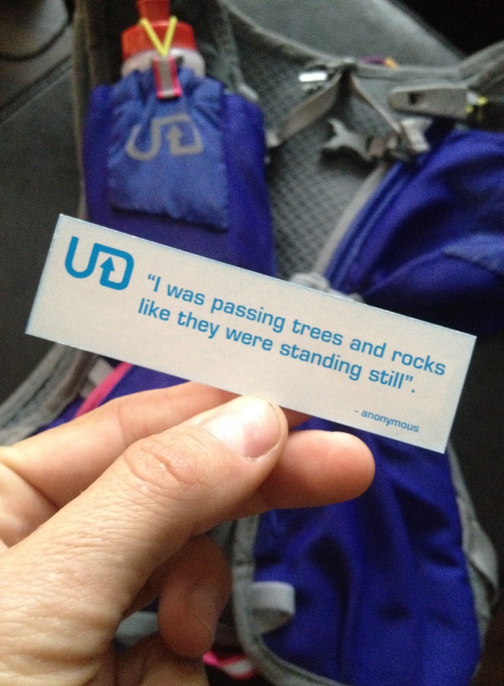 The best part was the quote. A small unique quote is placed inside the pack for the user to find and be inspired. Mine read: “I was passing trees and rocks like they were standing still” It lives on my mantle now and I smile every time I pass it on my way out the door for a run.